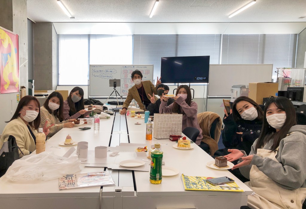 1ヶ月ぶりに元気な顔が見られました。年初の授業は作品ポートフォリオ講座です。zoomで参加する学生もいます。これから3年生は就職の準備活動に入ります。今年も状況により対面とオンライン授業、内容もオンとオフ両方を使い分けて安全で楽しく学べる授業をします。授業後はお楽しみの誕生日会でした。🎁🎂🎉おめでとう㊗️