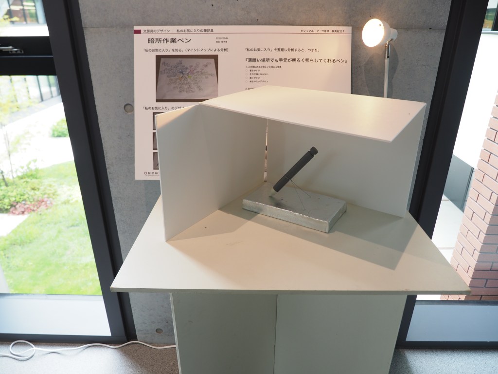 筆記具のデザイン 投稿者:Hideki HAYASHI2021年8月15日2022年10月29日カテゴリー:教育 プロダクトデザインゼミの最初の課題は「筆記具のデザイン」です。各自がそれぞれ欲しいと思う筆記具とは何か、マインドマップで分析し、コンセプトを作った後、アイディアをプロトタイプで具現化しました。 OLYMPUS DIGITAL CAMERA OLYMPUS DIGITAL CAMERA OLYMPUS DIGITAL CAMERA 田中 雄大 佐藤 華扇 柿島 モコ 藤浦 乃々子 落合堂 裕幾 菊池 真緒 小川 友里花 岡野 みやび 坂入 圭亮 古屋 亨 矢田 安侑子 猪俣 柚子香 OLYMPUS DIGITAL CAMERA 清水 琴音 共有: クリックして X で共有 (新しいウィンドウで開きます) X Facebook で共有するにはクリックしてください (新しいウィンドウで開きます) Facebook いいね 読み込み中… 関連 投稿者: Hideki HAYASHI 桜美林大学 芸術文化学群ビジュアル・アーツ専修 准教授 他の投稿を表示
