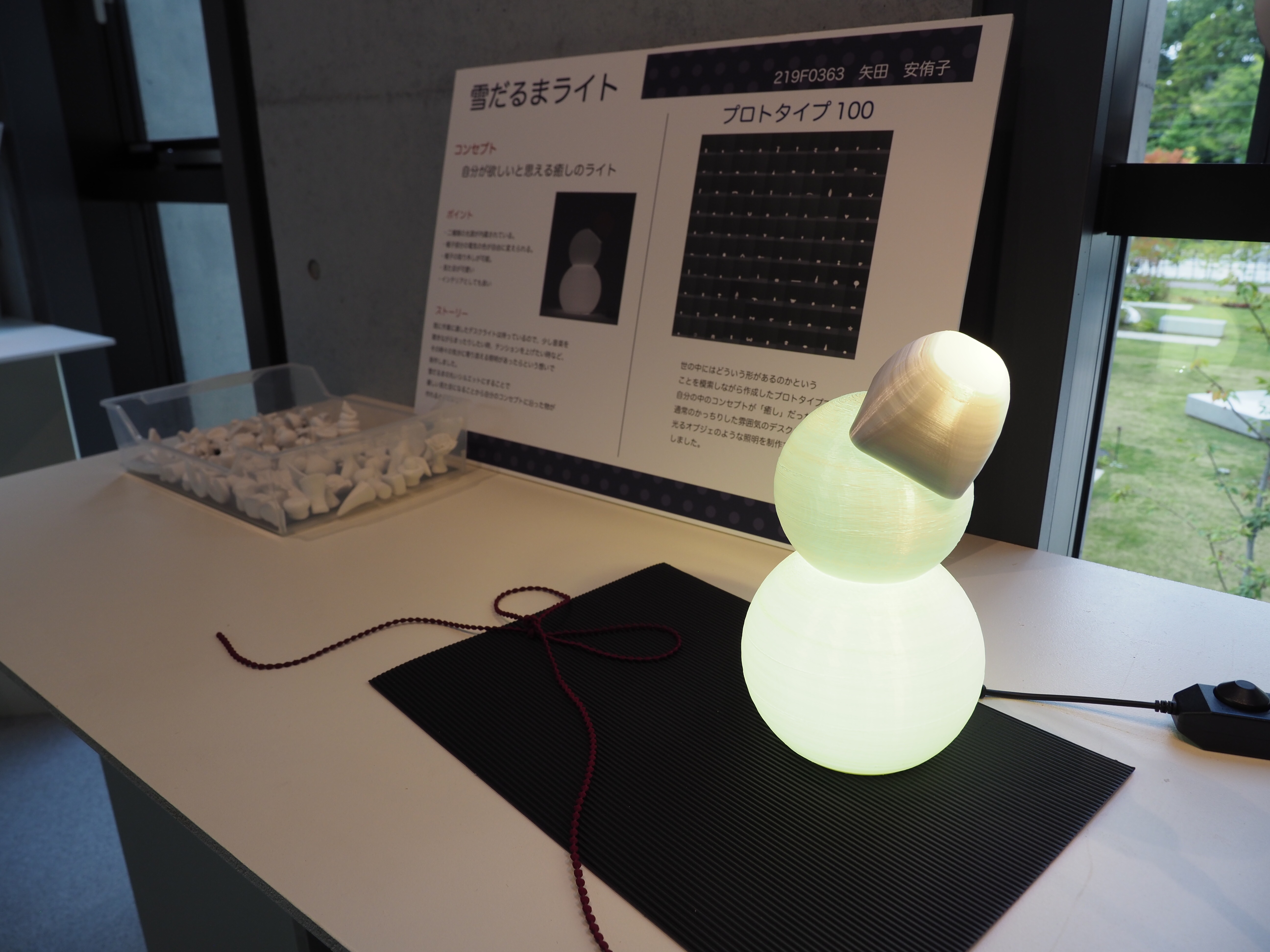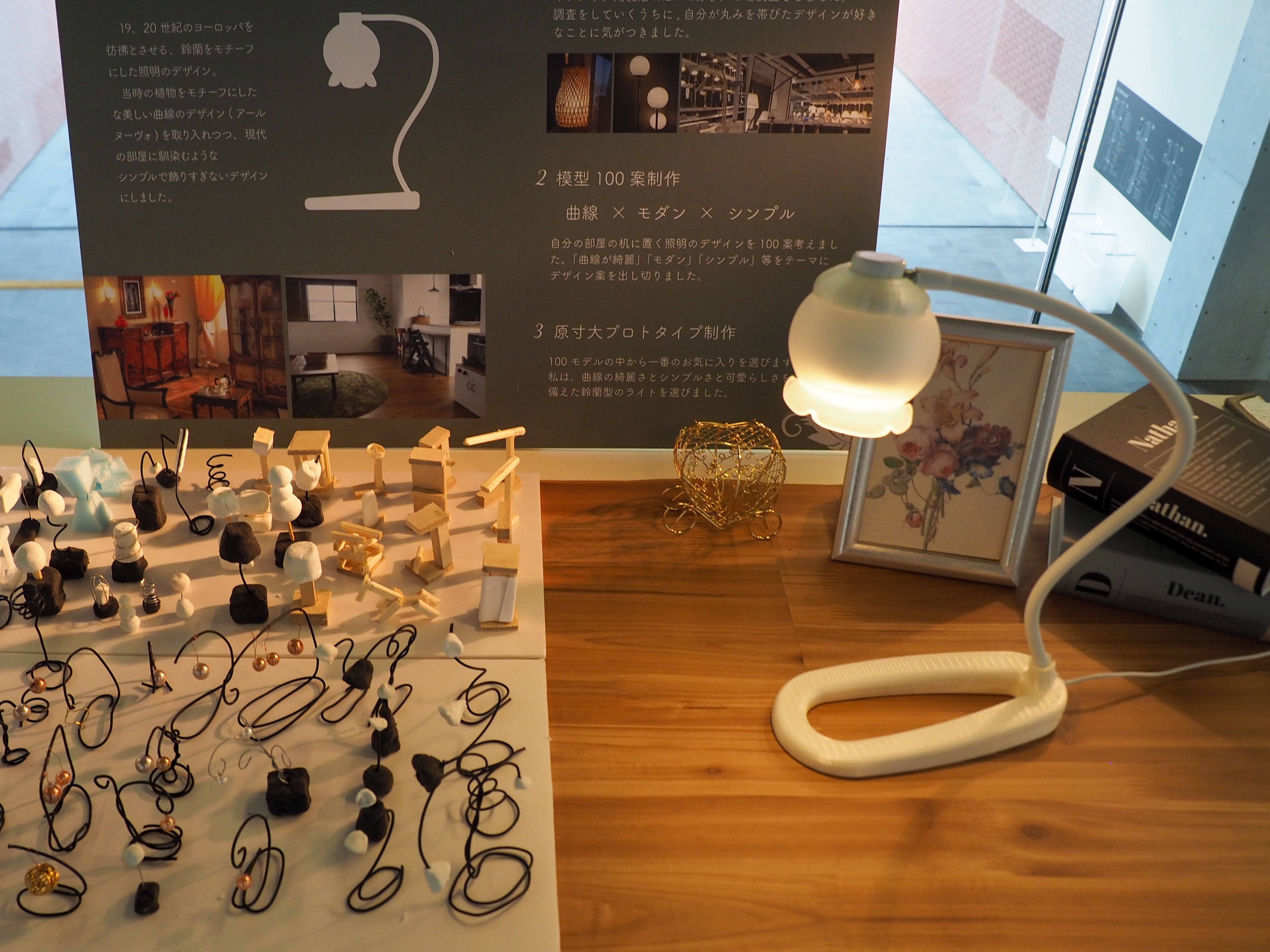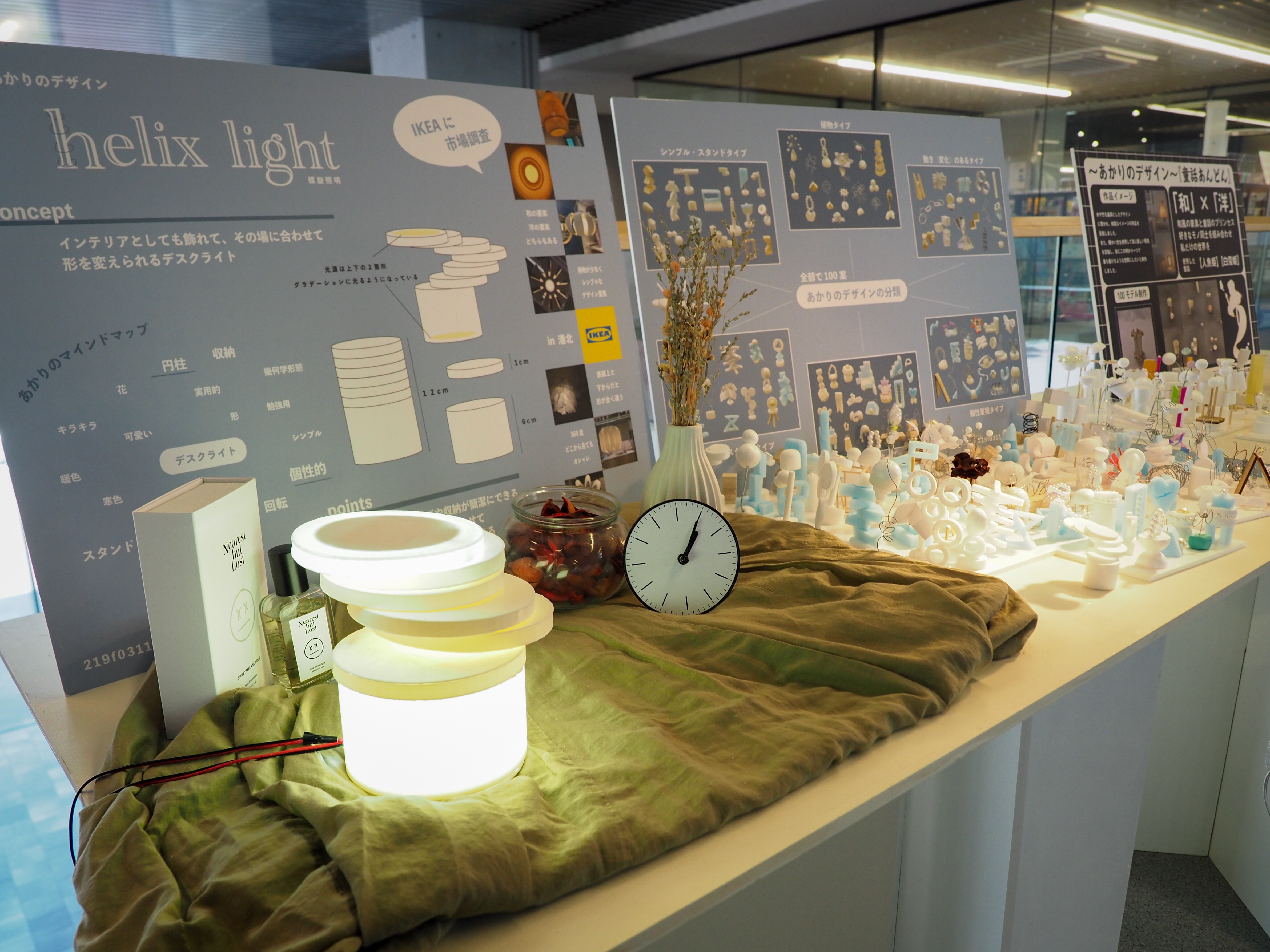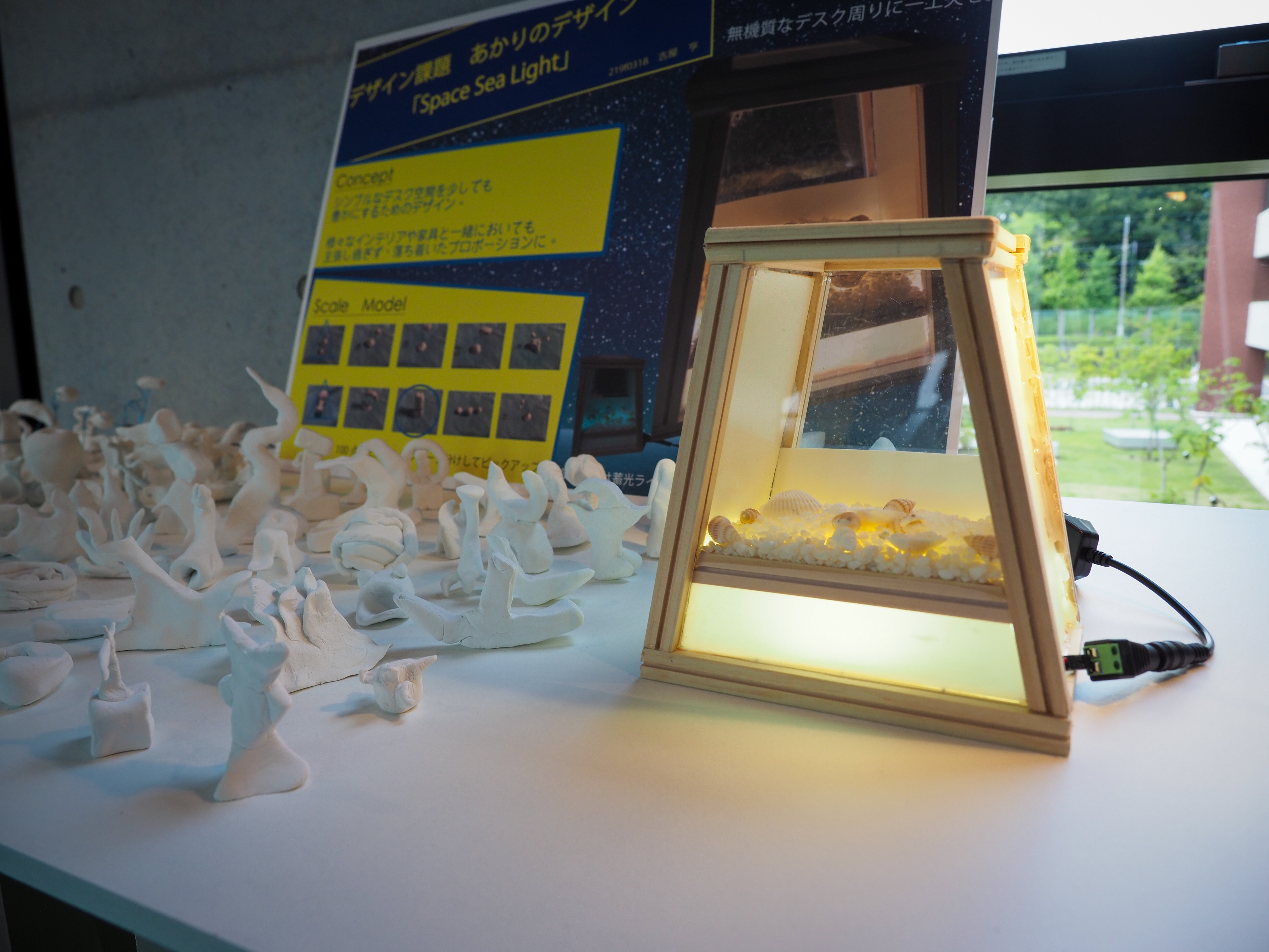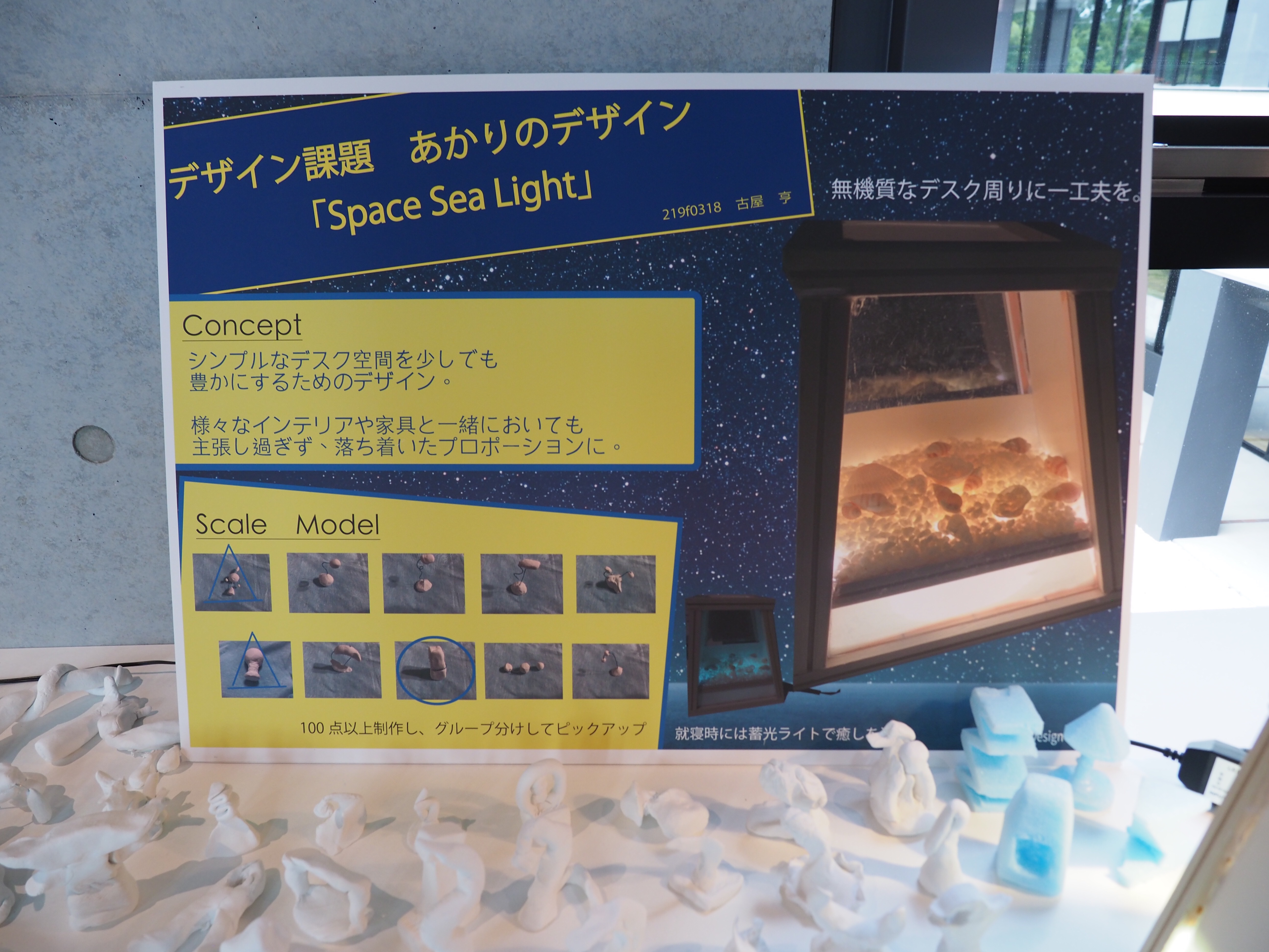 春学期3年生ゼミ展の作品です。学生自身が使用する照明器具をデザインしました。本課題の目標は発想力とプロトタイピング力の向上です。